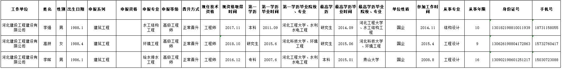 2021年供排水集團申報高級職稱人員登記表